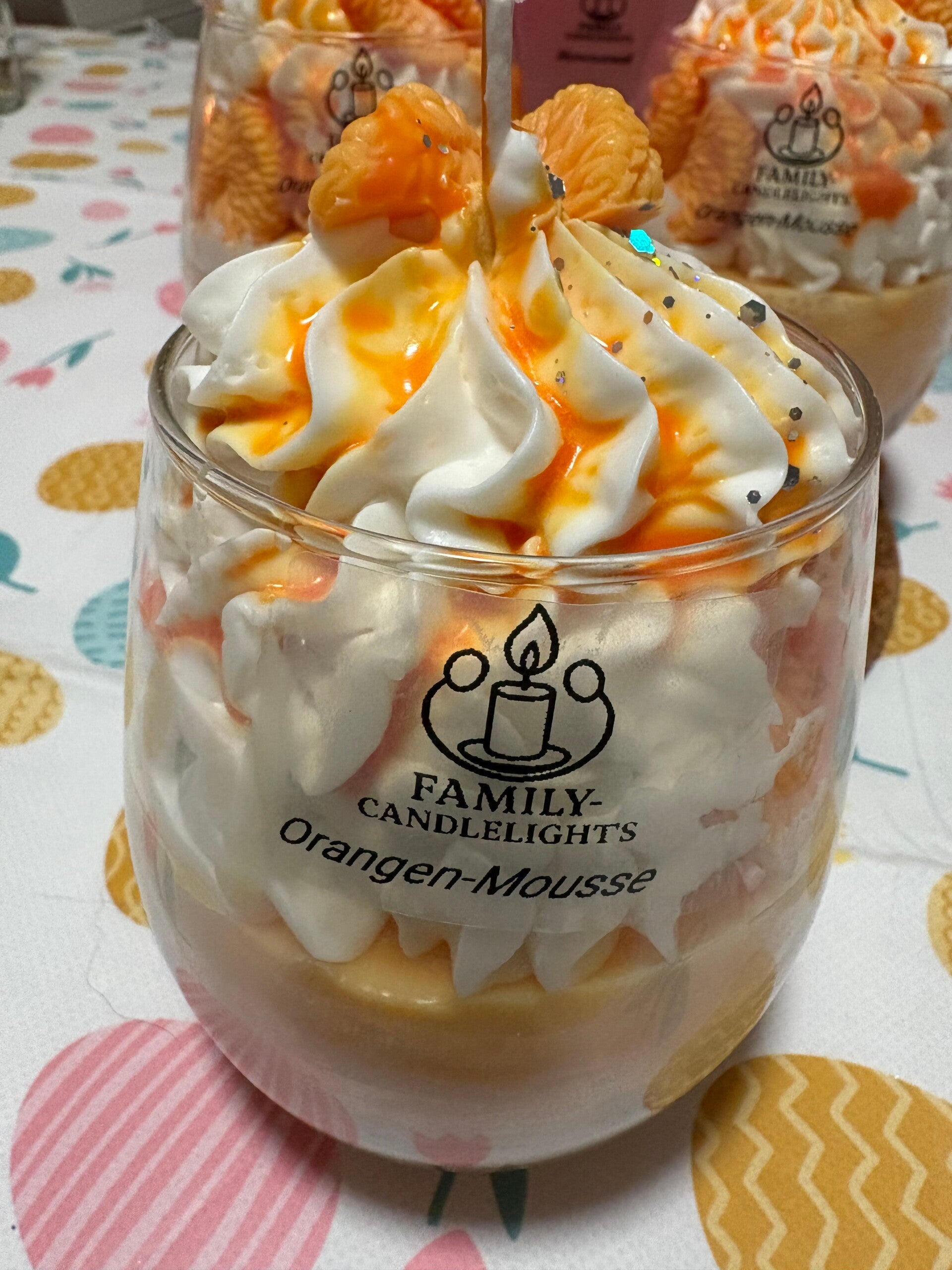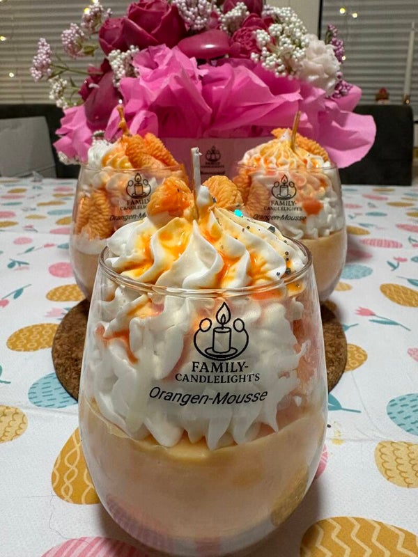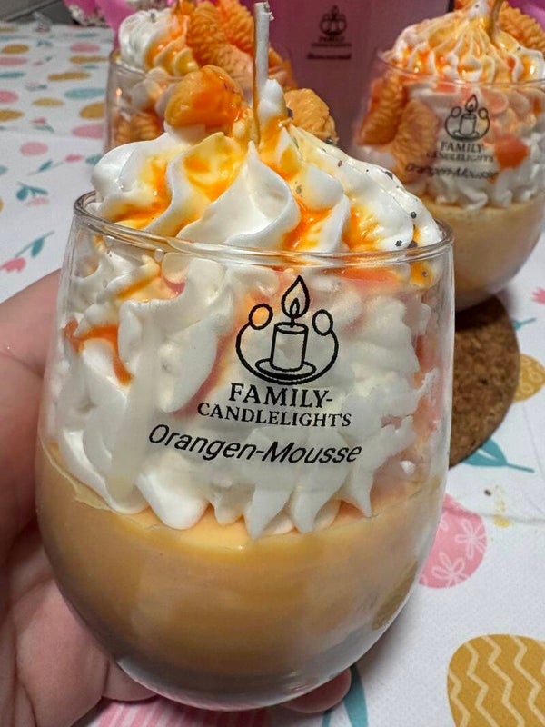Diese Dessertkerze ist einem Orangendessert nachempfunden. Der Duft ist fruchtig und riecht natürlich nach Orange. Wie unsere anderen Kerzen besteht auch diese aus Sojawachs und ist daher für Allergiker geeignet.