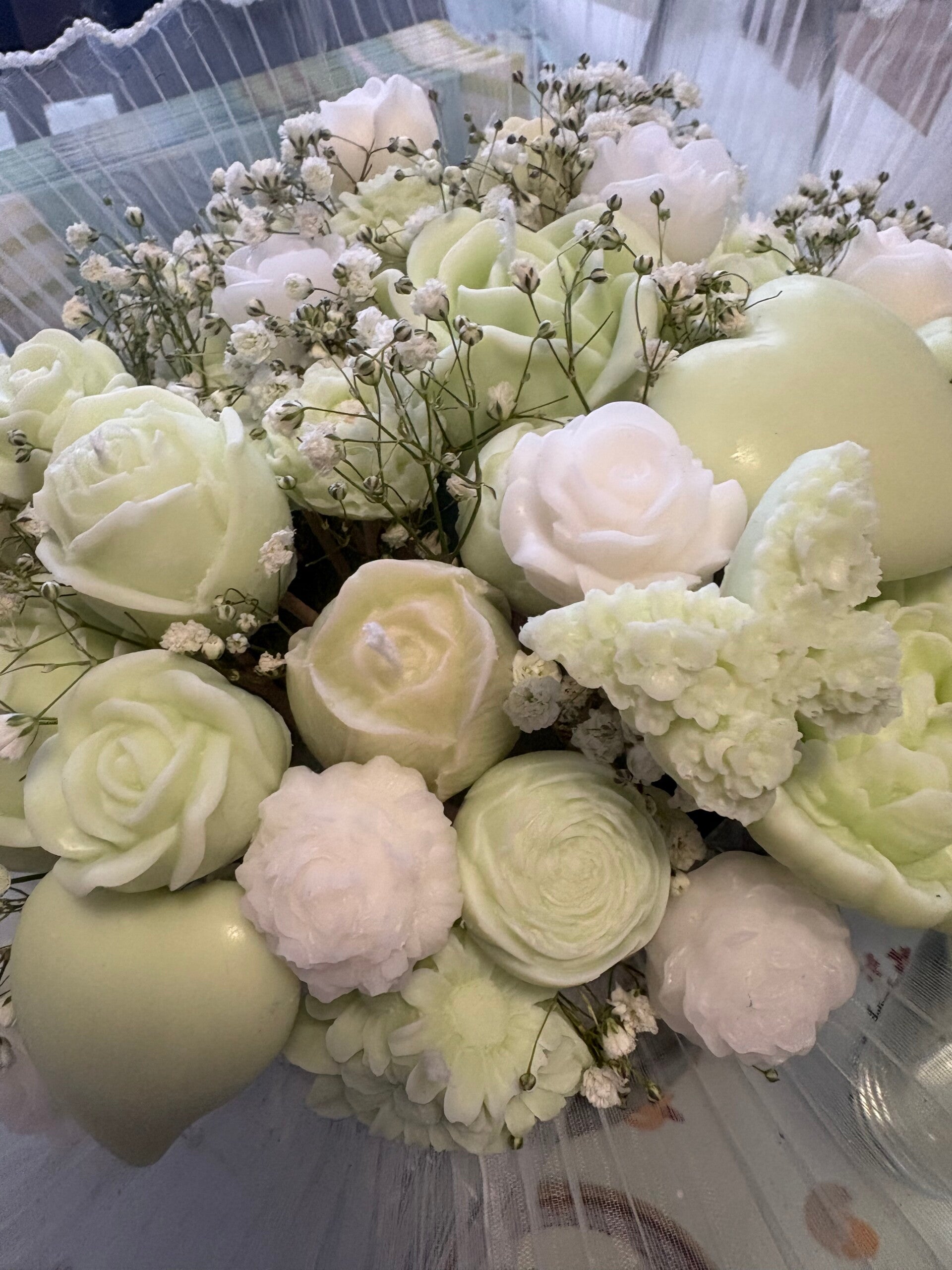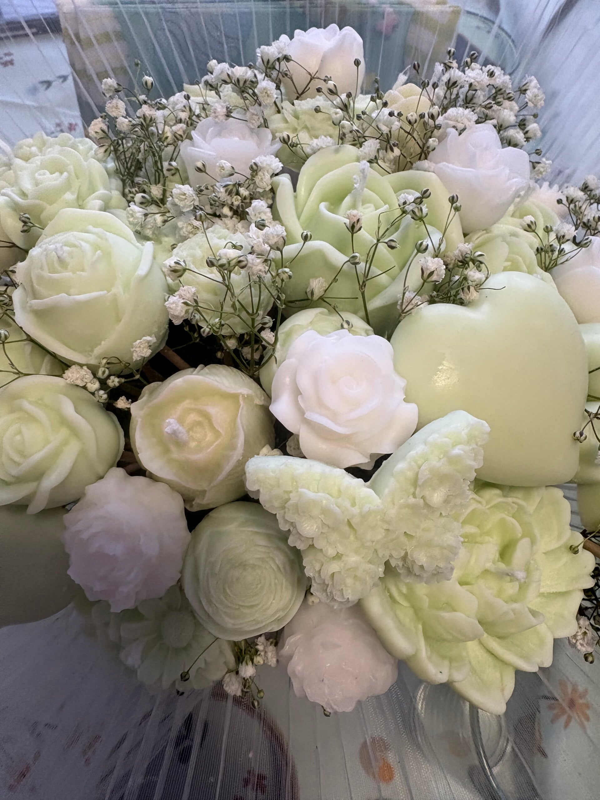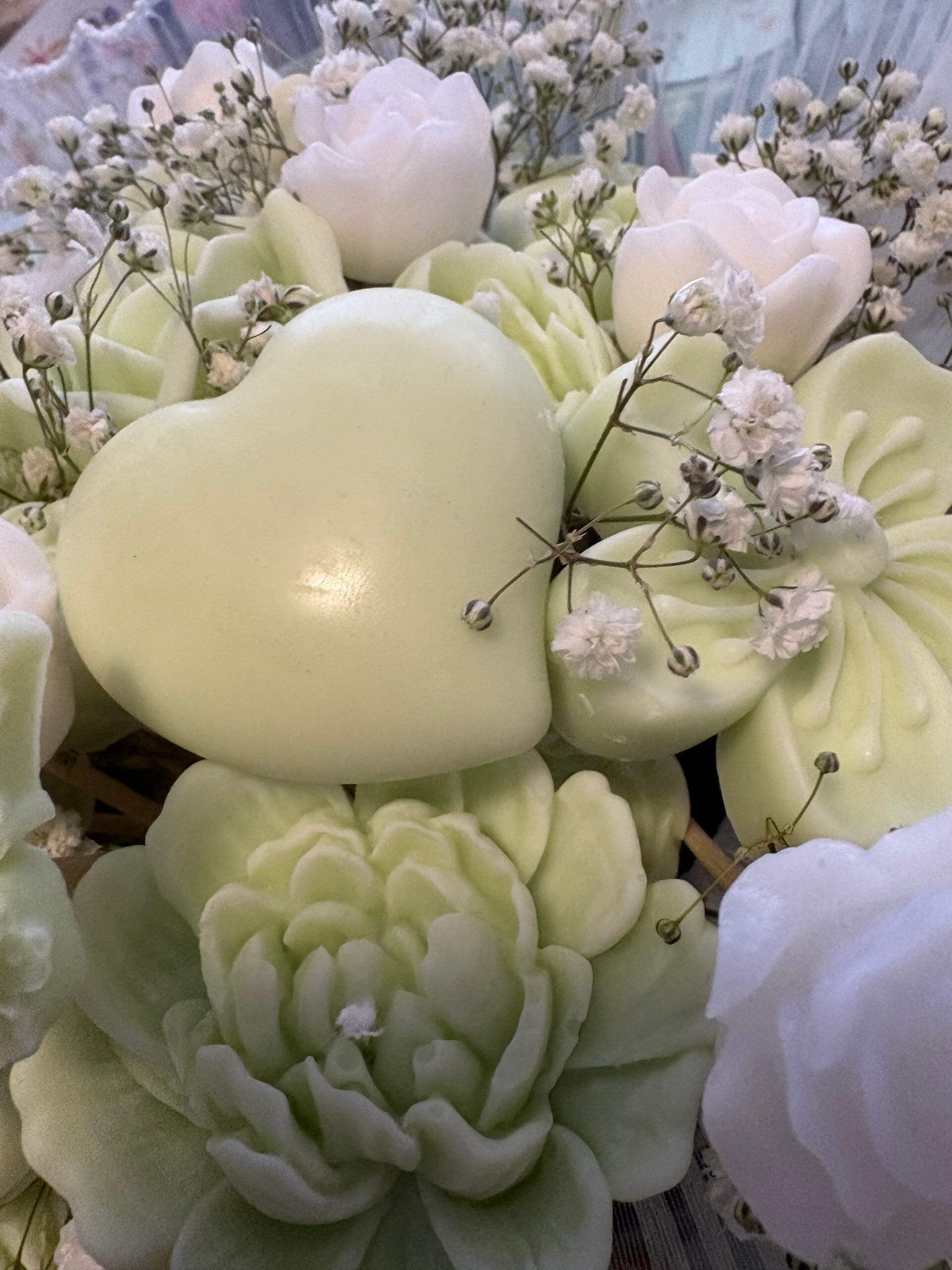 Dies ist unser großer Blumenstrauß mit vielen verschiedenen Farben und Blüten. Auch hier sind Kreativität keine Grenzen gesetzt. Melden Sie sich, wenn Sie spezielle wünsche Haben. Die Sträuße sind entweder Deko oder aber auch als Duftwachsmelts nutzbar. Also einfach die einzelnen Elemente abnehmen und auf einem Stöfchen langsam runterbrennen lassen. So gibt es einen tollen Duft im ganzen Raum